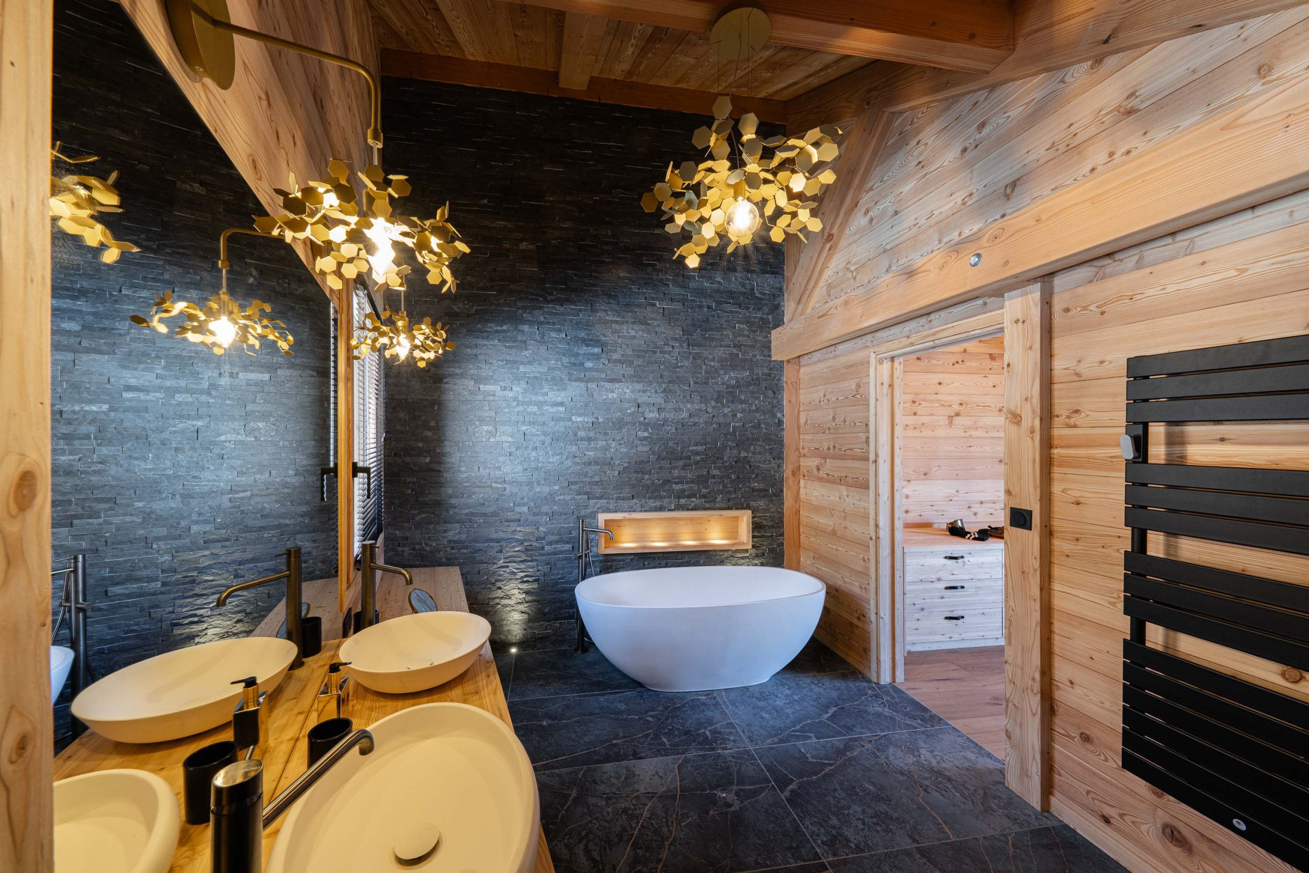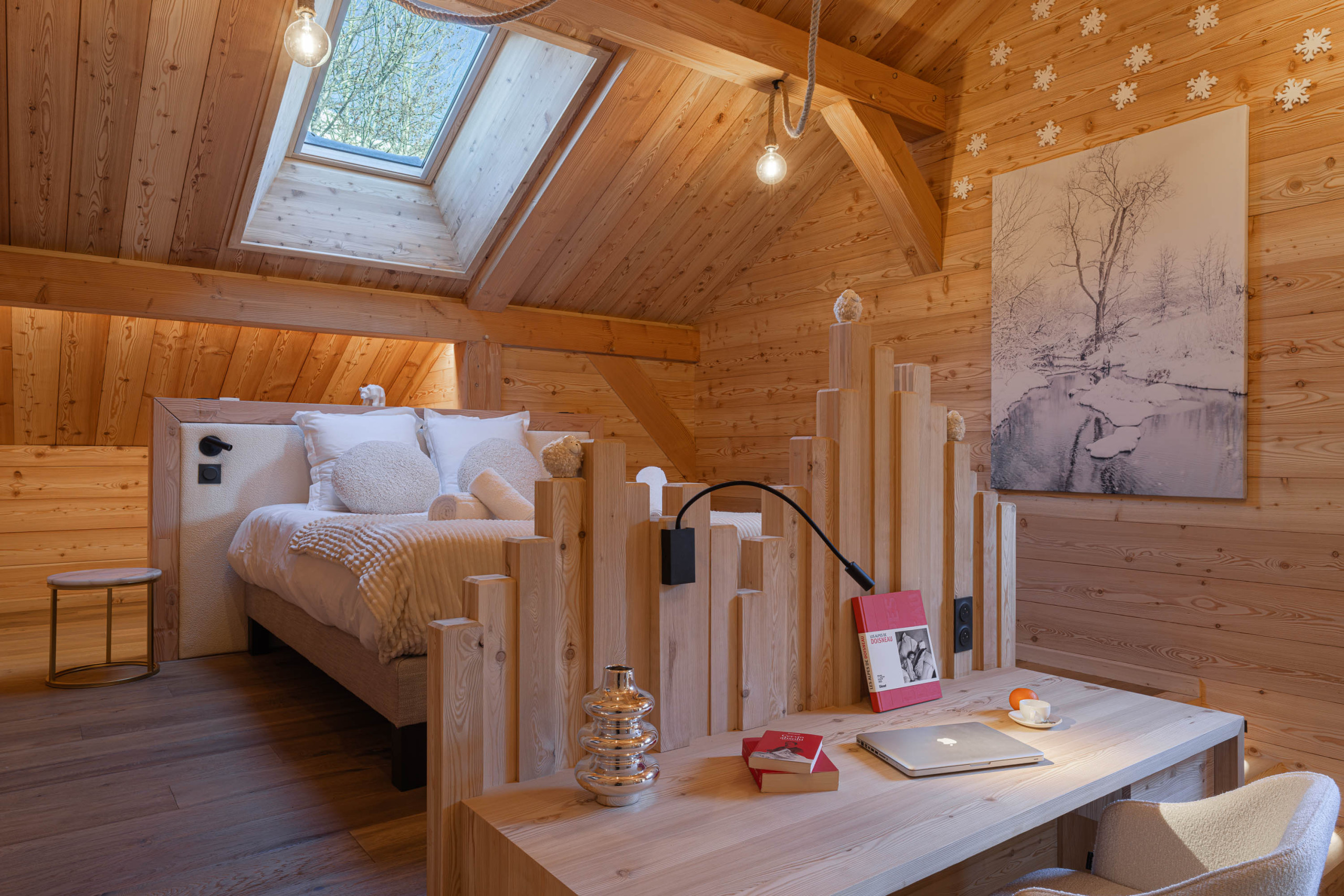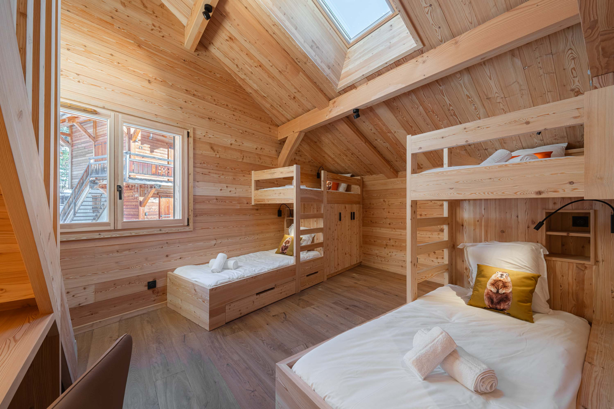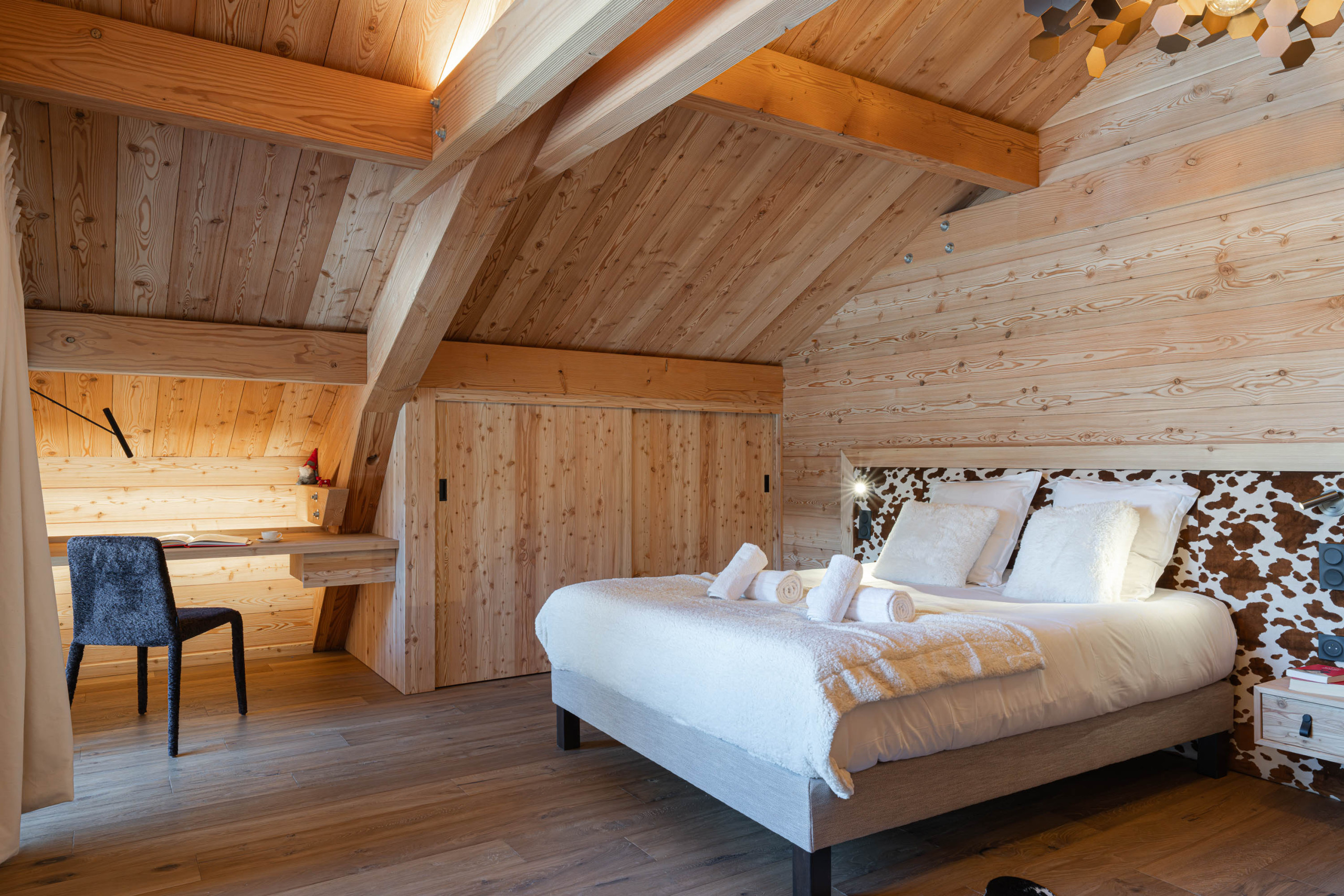 Designed to accommodate up to 14 people, this chalet combines contemporary elegance and absolute comfort for unforgettable mountain stays. It features five spacious bedrooms, including a cosy dormitory ideal for children, all equipped with their private bathroom and toilet.