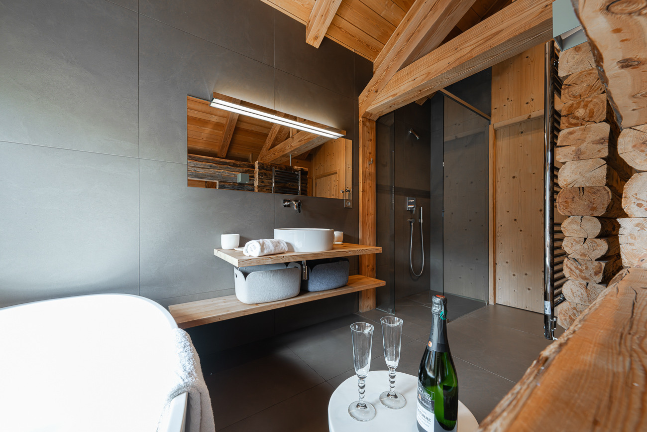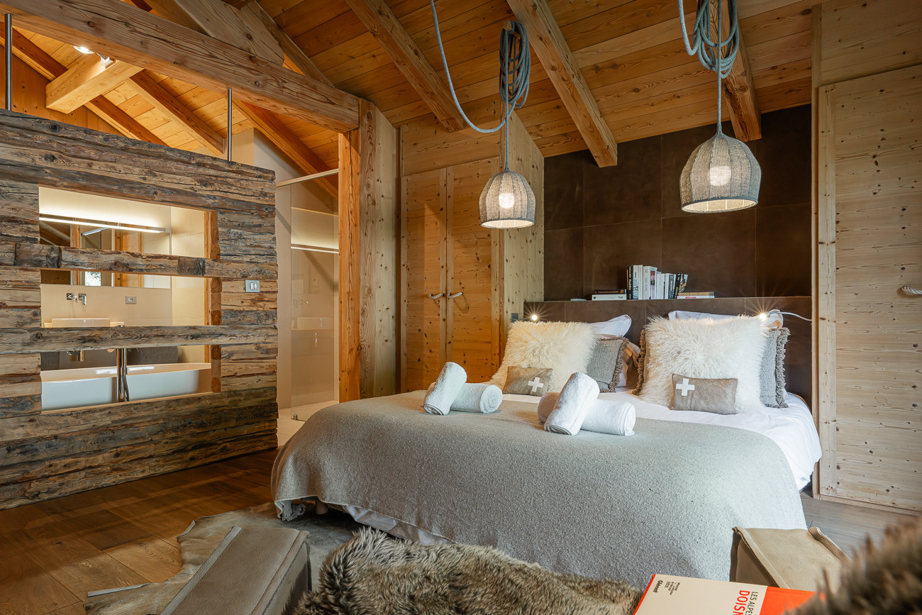 L’espace nuit comprend deux superbes suites parentales, chacune équipée d’une baignoire îlot, d’une douche à l’italienne, d’un double lavabo et de toilettes indépendants, offrant confort et intimité. L’une des suites bénéficie d’une vue imprenable sur le jardin, tandis que l’autre offre un panorama exceptionnel sur les pistes.