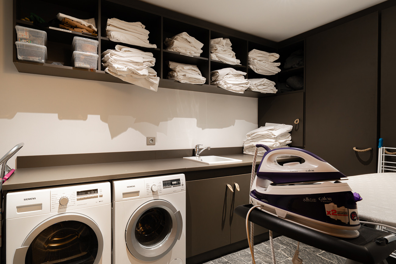 Côté pratique, le chalet dispose également d’une buanderie entièrement équipée pour faciliter votre séjour.