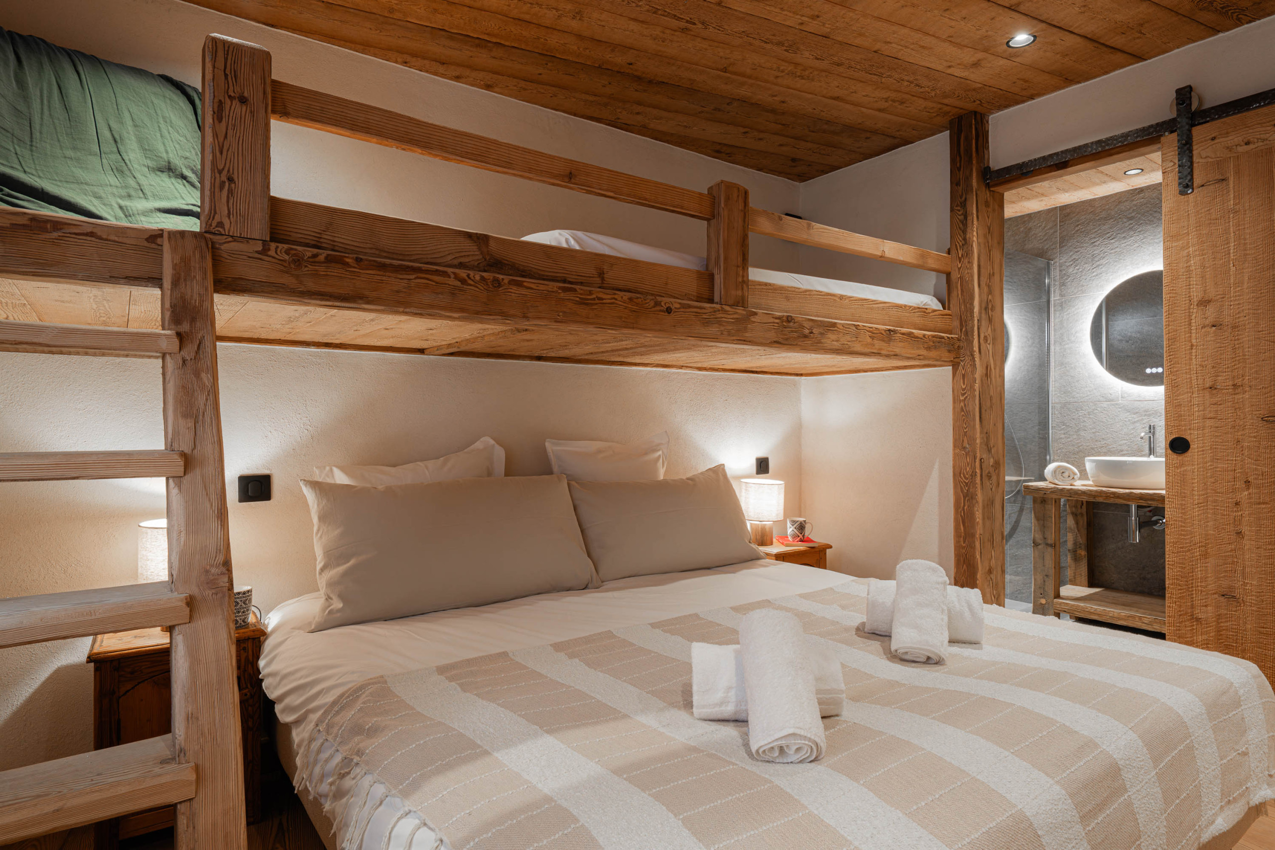 Réparti sur plusieurs niveaux, le chalet offre 6 chambres élégantes, dont certaines avec lits king-size ou queen-size, et des espaces pensés pour la convivialité :