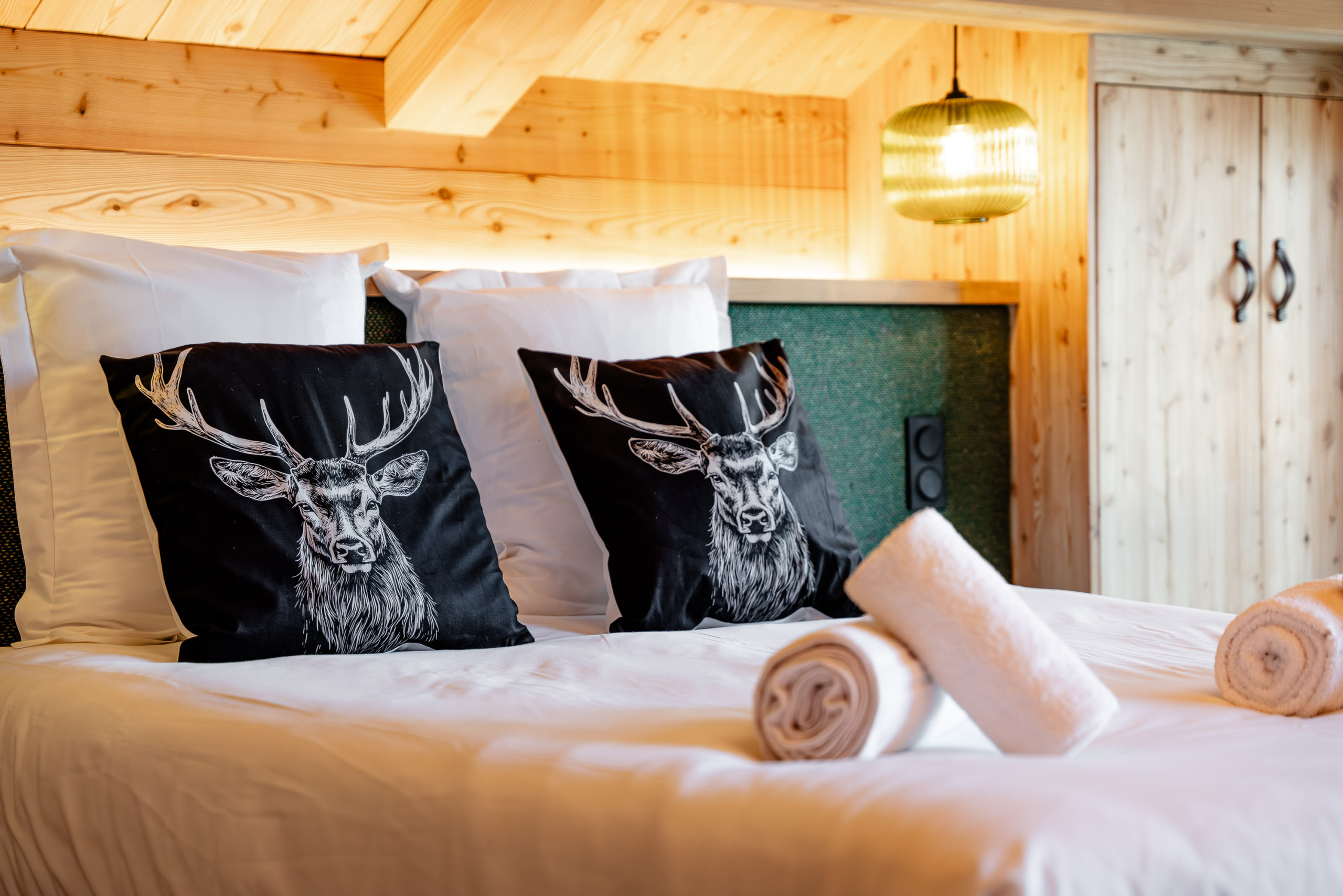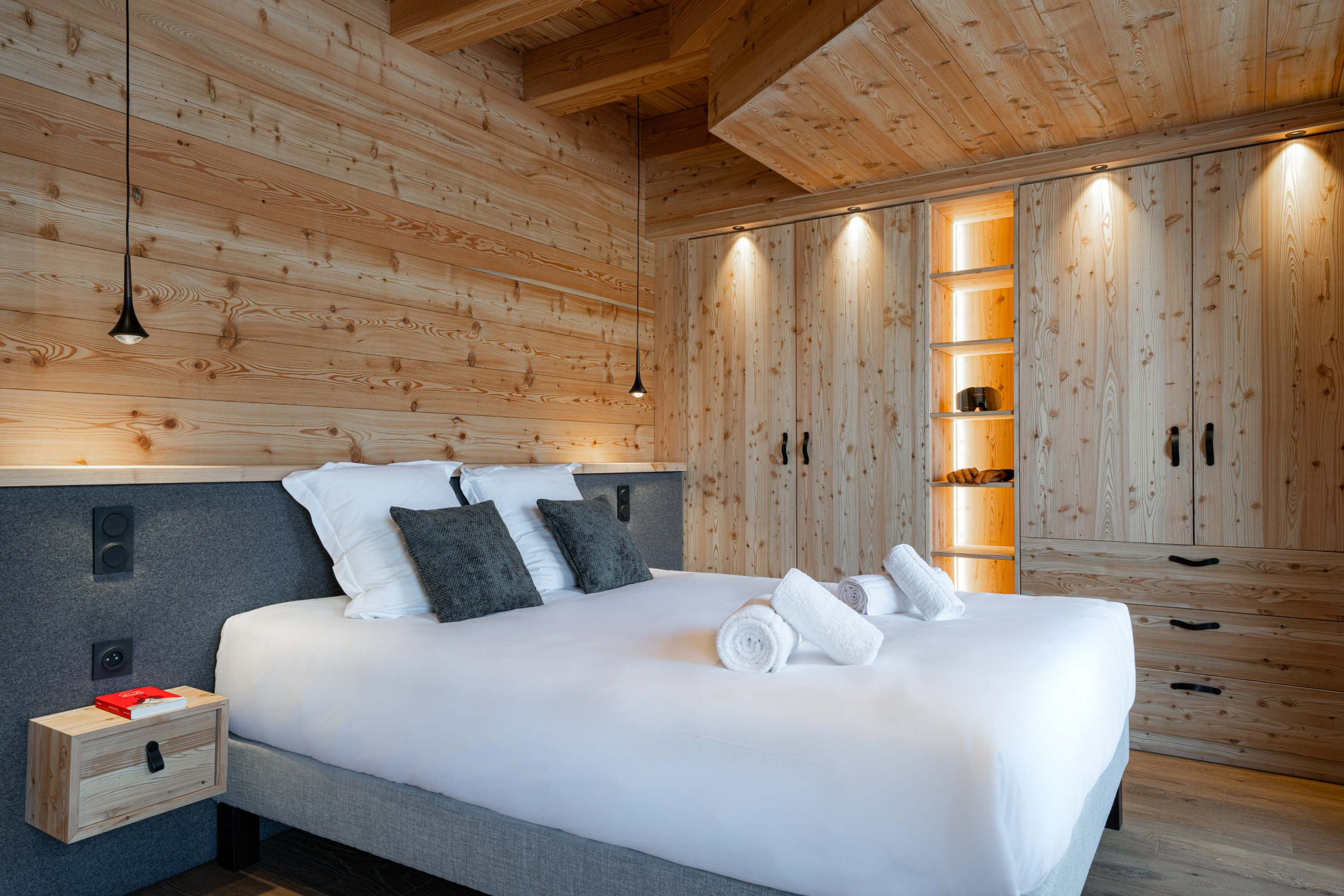 Conçu pour accueillir jusqu’à 14 personnes, ce chalet allie élégance contemporaine et confort absolu pour des séjours inoubliables à la montagne. Il dispose de cinq chambres spacieuses, dont un dortoir chaleureux idéal pour les enfants, toutes équipées de leur salle de bain privative et de WC.
