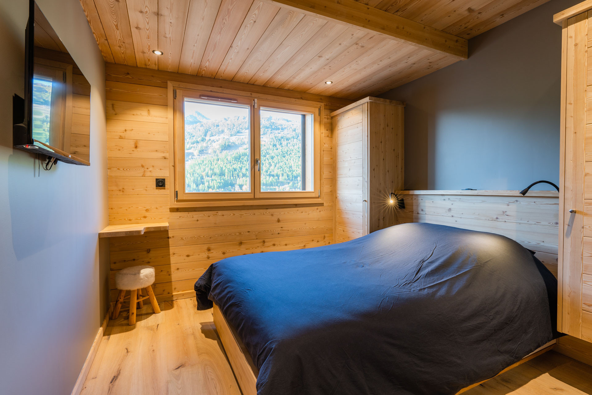 Au dernier étage, une suite parentale offre une vue imprenable sur la piste Luc Alphand.