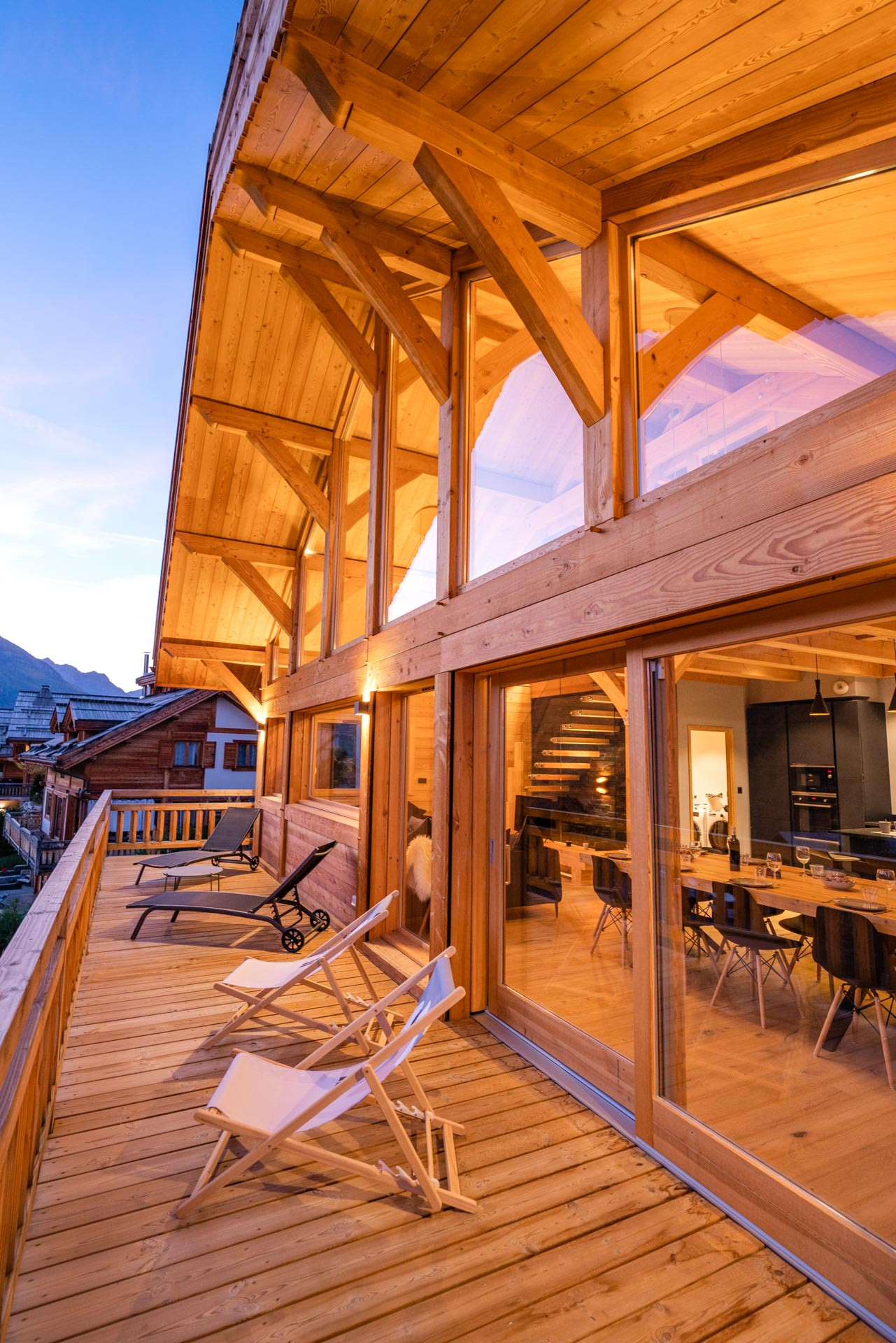 Ce chalet de prestige, alliant tradition de par sa construction en mélèze et en pierre et modernité par ses très beaux volumes, vous séduira par son ambiance chaleureuse et ses vues spectaculaires sur la vallée.